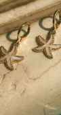For those starfish lovers who love coastal charm, a set of starfish huggie hoop earrings suspended from a classic huggie hoop design.